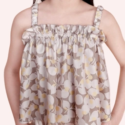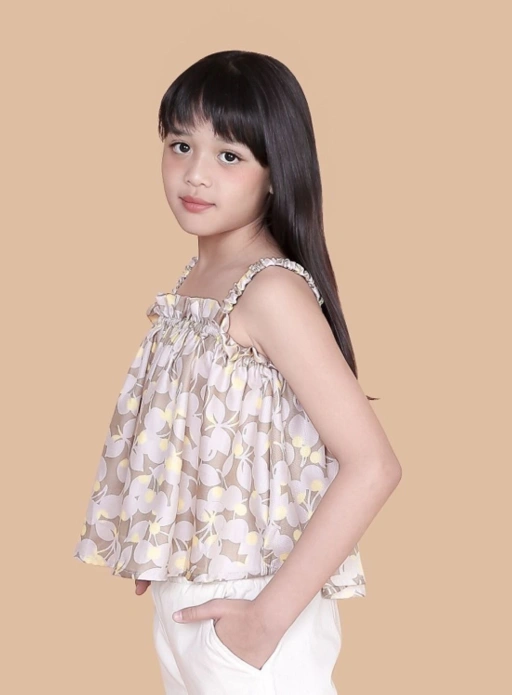 Calla Flowers Crop Top di buat dari bahan Rayon Twill karateristik bahan yang lembut dan lentur dibuat dengan model yang gemesh di mix and match depan Ava White Pants warna yang senada, bayangin deh Moms si cantik pakai setelan ini🥰