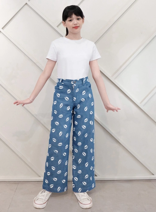 kalo moms cari bahan jeans adem dan lembut lipssy jeans cocok banget nih untuk untuk playdate sikecil atau dipakai untuk jalan jalan seharian cuttingan jeans yang tidak ketat yang pasti nya hijab friendly banget nih moms ditambah dengan aksen motif lip dibagian celana membuat style makin keliatan cheerful dan energik 😉🥰