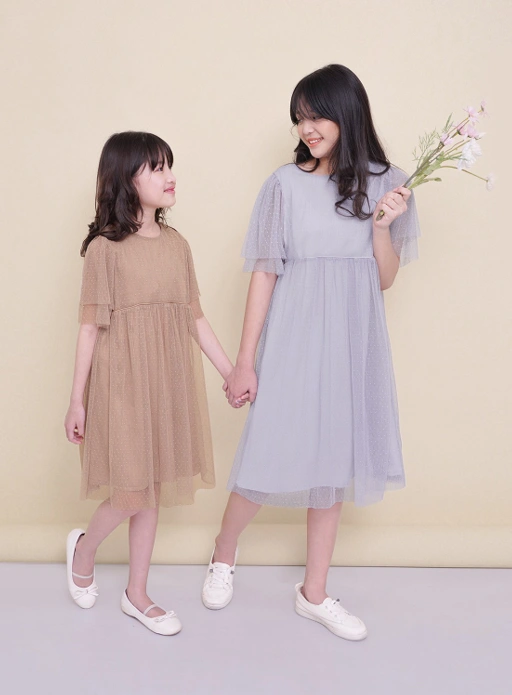 Dress dengan bahan tulle ini pasti selalu jadi incaran dan andalan para mommy untuk menemani acara formal. warna nya yang soft cocok banget masuk ke semua skintone,untuk lengan nya ga sleeveless ya momsay ada 2 layer lengan dengan bahan tulle yang pasti nya gabikin gatal dan nyaman di pakai ke kulit,ada inner di bagian dress yang menyerap keringat dan aman banget dipake seharian mau aktivitas indoor ataupun outdoor jadi moms gausah khawatir kalo si kecil bakal cranky